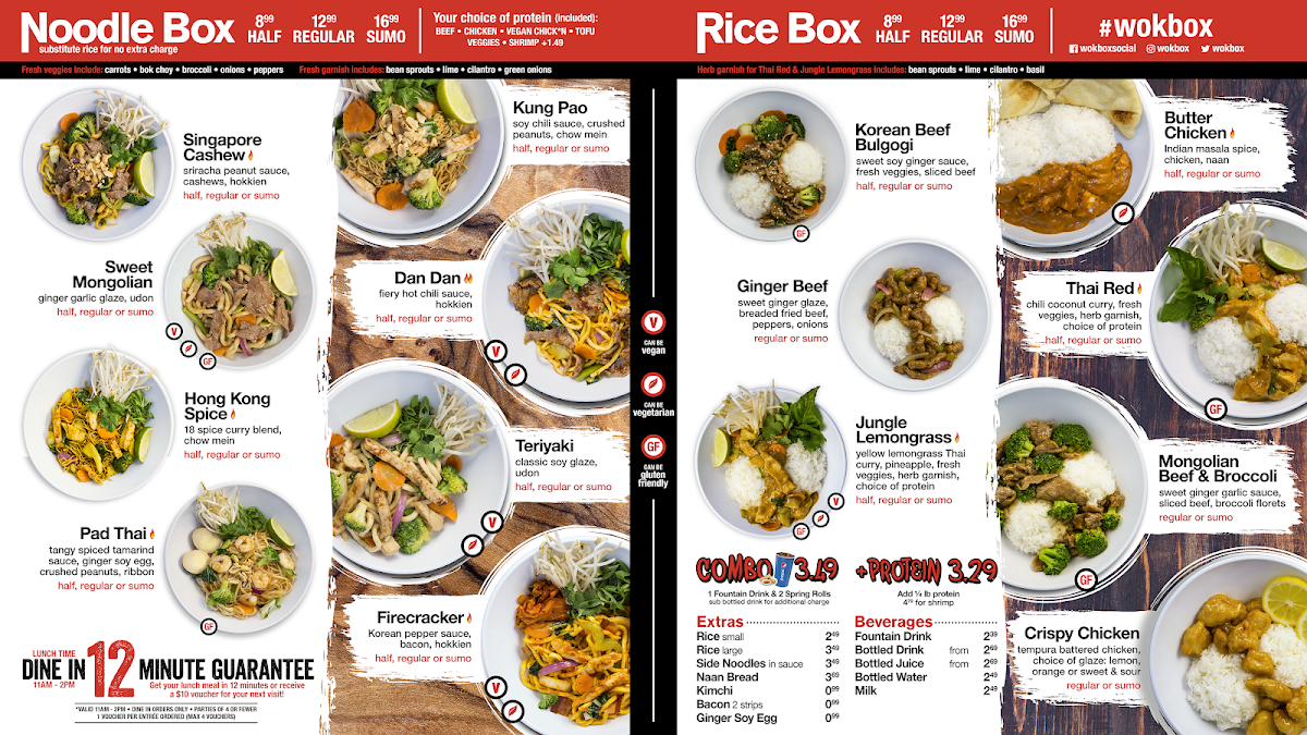 Welcome to Wok Box - Kenaston, a culinary gem nestled in Winnipeg on Kenaston Boulevard. This vibrant eatery specializes in Asian-inspired dishes that cater to diverse palates. The menu is a delightful mix, featuring value options like Teriyaki bowls and Spicy Peanut creations, all customizable with fresh veggies and your choice of protein for just CA$12.99.